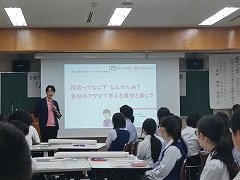 一般社団法人ライフ&ワーク 代表理事 妹尾昌俊 先生による講演 「探究って何? 何のため? 自分のアタマで考える意味と楽しさ」や、 グループによるワークショップ活動をとおして「探究活動の目的」や「探究活動における課題やテーマの設定」など、これからの探究活動における基本的な考え方や取り組み方法について理解を深めました。